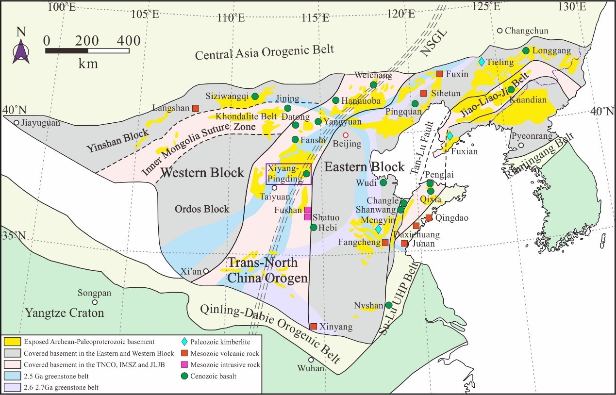 华北克拉通中-新生代以来因其遭受明显的改造和破坏而成为全球研究大陆岩石圈地幔(SCLM)演化的理想场所,其东部古老难熔的克拉通型SCLM已转变为现今年轻饱满的类似“大洋型”的SCLM。与东部较彻底的岩石圈改造不同,华北克拉通中西部仍保留了古老难熔的SCLM,但是中西部的地幔捕虏体主要发现于北部(繁峙、大同、阳原、汉诺坝和围场,图1)新生代玄武岩中,中部幔源捕虏体的缺乏使得该区岩石圈地幔性质一直缺少直接有效的制约。
