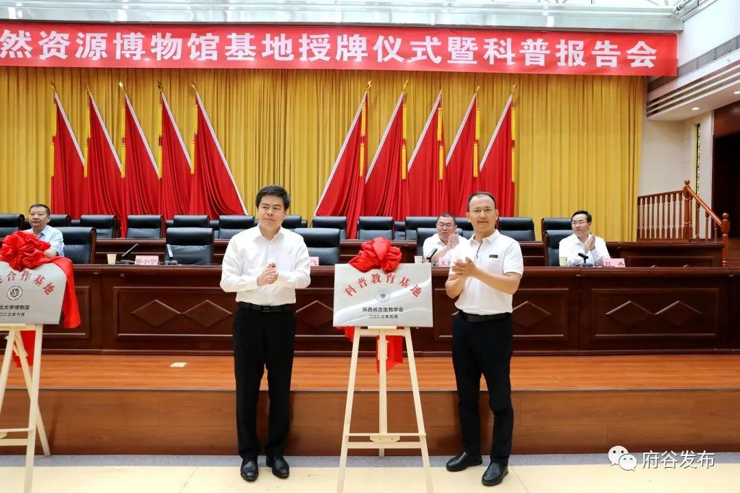 626日,系主任张志飞一行前往府谷县举行自然资源博物馆基地授牌仪式暨科普报告会,并向府谷自然资源博物馆授予“陕西省古生物学会科普教育基地”和“yl6776永利集团博物馆共建合作基地”牌匾。府谷县县委书记田小宁,县委常委、副县长白艳霞,副县长刘春雷,yl6776永利集团博物馆常务副馆长刘杰等领导参加授牌仪式。张志飞、田小宁为“陕西省古生物学会科普教育基地”揭牌,白艳霞致辞。