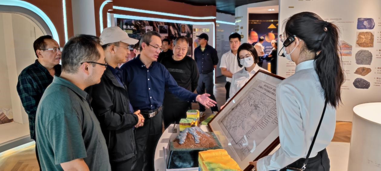 西北有色地质勘查局地质科技部部长王瑞廷向张志飞一行介绍了中国秦岭地质矿产科技展览馆的建设和馆藏情况,通过岩心、矿石、标本及地、采、选、冶、加工和模型展示,揭示了秦岭山脉地质构造、矿产分布、矿床成因及赋存特征等自然科学与技术工艺,也充分展示了大秦岭山川秀美、品类丰盛的壮丽图卷。