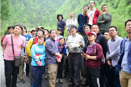 室内讲座在伯声报告厅举行,全系师生共八十余人参加。报告主要从区域地质调查的内容及方法、露头尽度的构造解析和野外剖面-露头素描等几个方面进行了详细介绍,并通过一些典型实例介绍如何从野外实际现象提取有用信息,形成认识。在持续近3小时的报告中,师生始终保持着高度的学习热情,现场互动热烈。在室内讲座的基础上,选取横跨华北地台南缘到秦岭造山带的罗敷-洛南剖面进行野外现场教学,6776永利集团有五十名教师参加。该剖面从稳定地台到活动造山带,地质内容丰富,现象典型,是我系野外实习教学的重点路线。在两天的野外考察中,青年教师与专家就多个地质现象进行了热烈的交流讨论,将扎实的野外观察与最新的研究成果相结合,极大的丰富了我系实习教学内容。