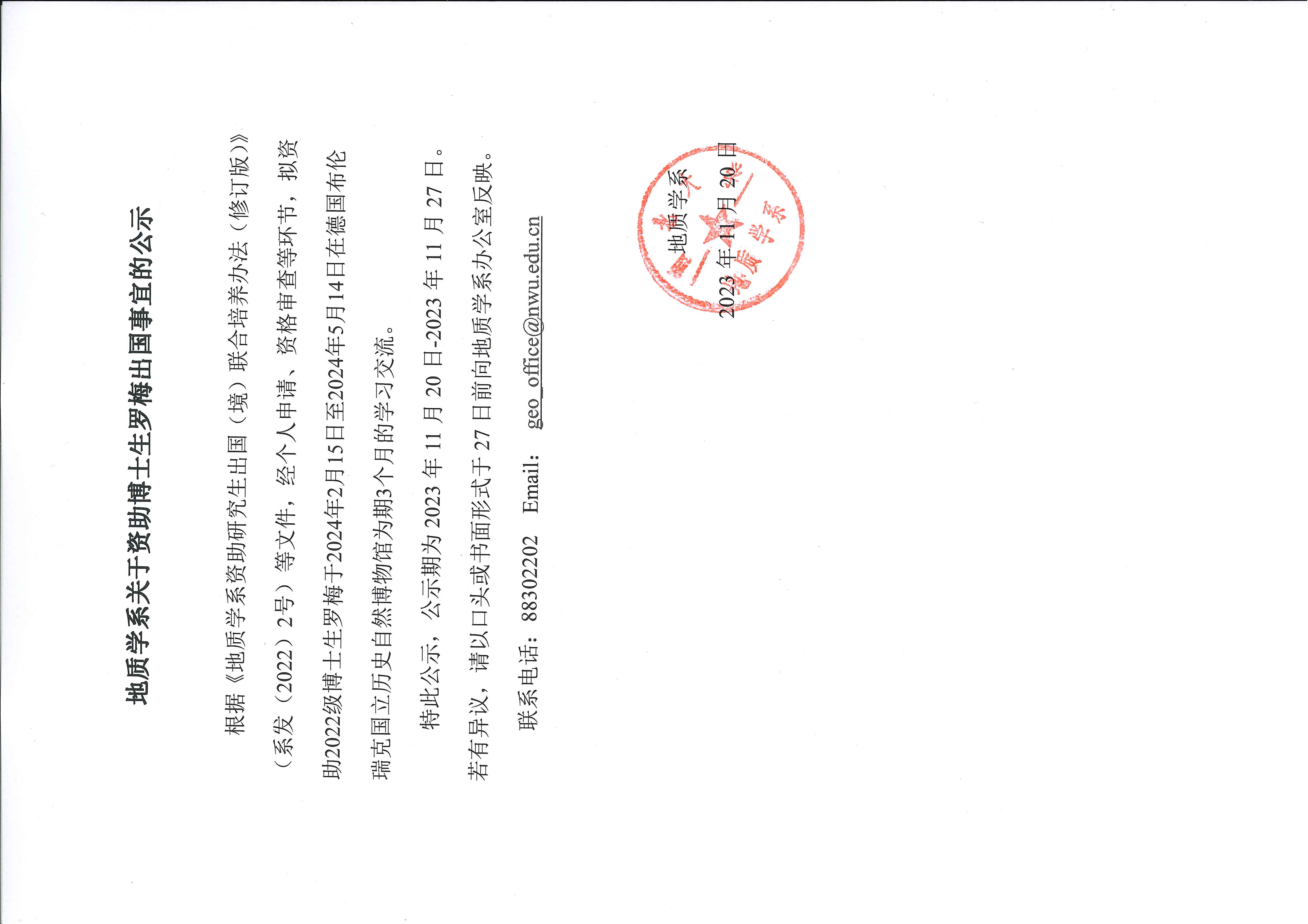 6776永利集团关于资助博士生罗梅出国事宜的公示