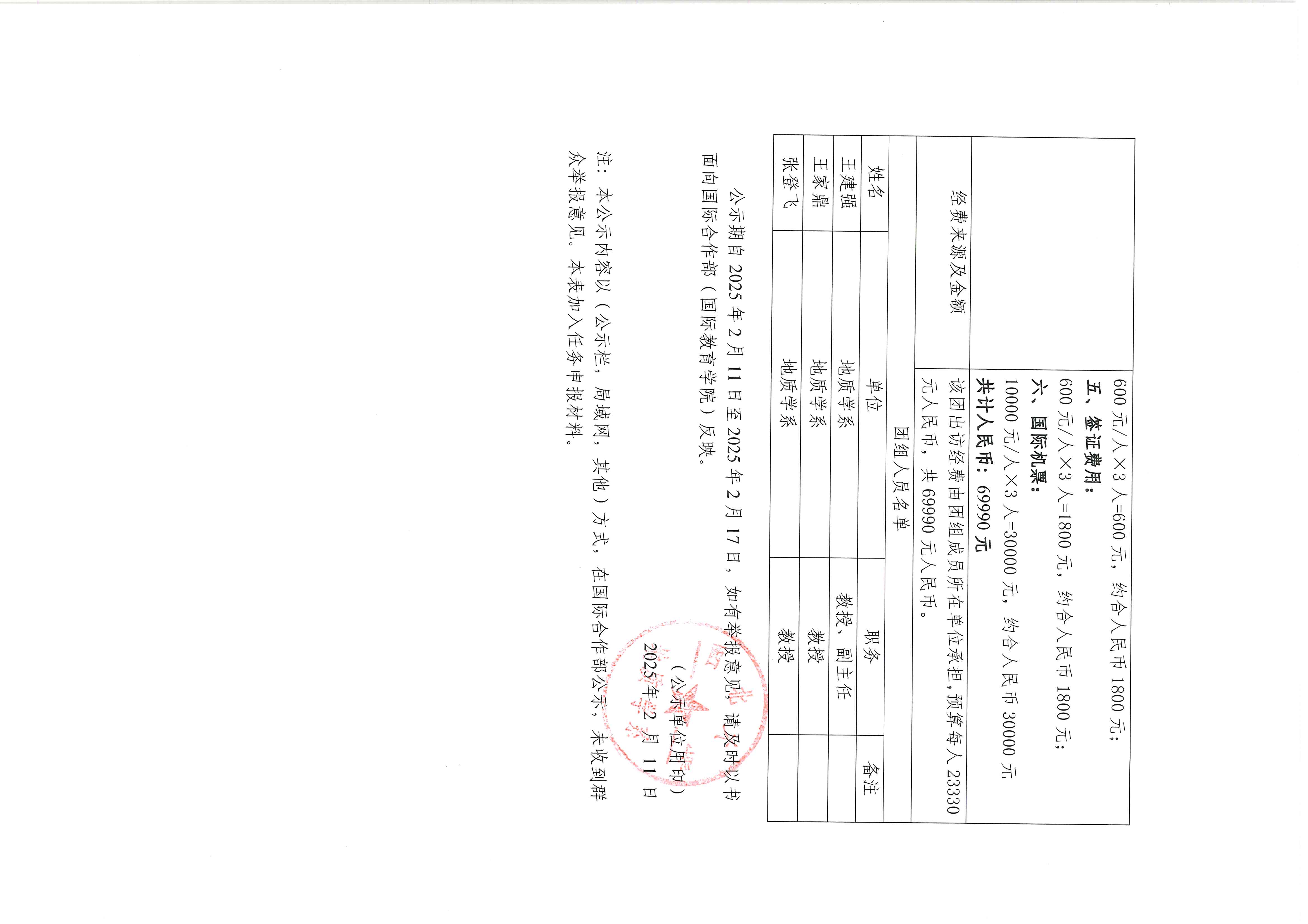 王建强、王家鼎、张登飞因公出访任务行前公示