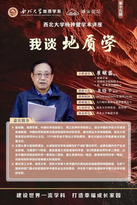 11月20日,由6776永利集团主办的“拔尖论坛”第十九讲暨“yl6776永利集团杨钟健学术讲座”系列活动在yl6776永利集团太白校区钟健报告厅举行。中国科学院院士翟明国研究员应邀为师生作了题为“我谈地质学”的报告。校党委常委、副校长张志飞代表学校致辞,并向翟明国院士赠送了“杨钟健学术讲座”纪念牌。中国科学院院士杨树锋、6776永利集团书记陈峰、副主任龙晓平及6776永利集团师生代表参加了报告会。
