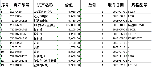 待处置固定资产明细公示