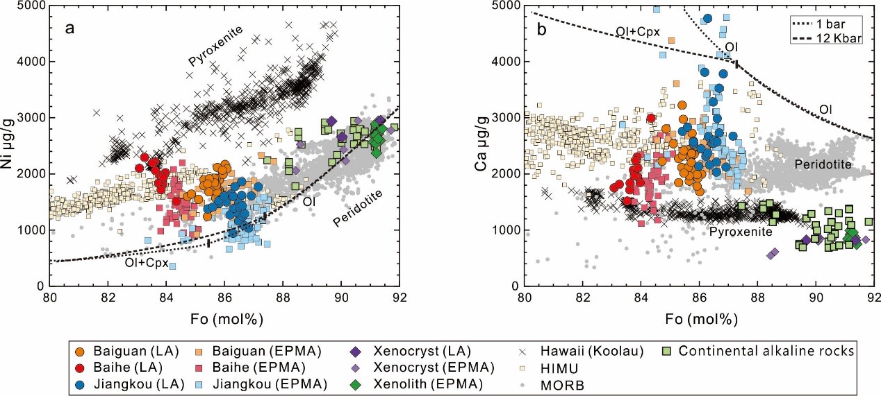 碳作为典型的变价元素,其在地幔中的赋存形式主要受氧逸度(fO2)控制。在高氧逸度条件下,碳以碳酸盐和CO2形式存在,可显著降低地幔固相线,诱发部分熔融并形成碳酸盐熔体;而在低氧逸度环境下,碳则以金刚石、石墨或金属碳化物的形式存在,这些还原态相对稳定,对地幔固相线无影响。因此,约束地幔氧逸度是研究深部碳循环的关键。