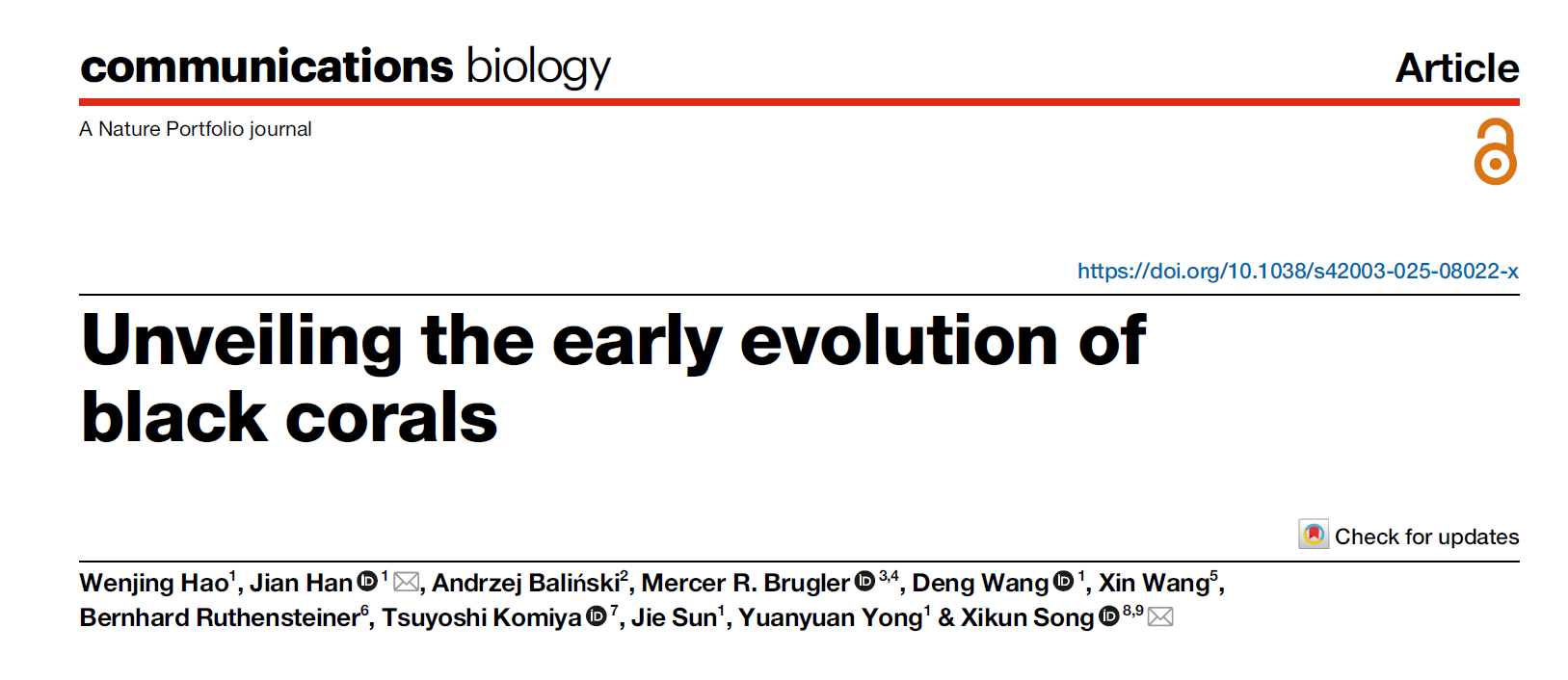 , 2025, Unveiling the early evolution of black corals,Communications Biology,8:579. https://doi.org/10.1038/s42003-025-08022-x